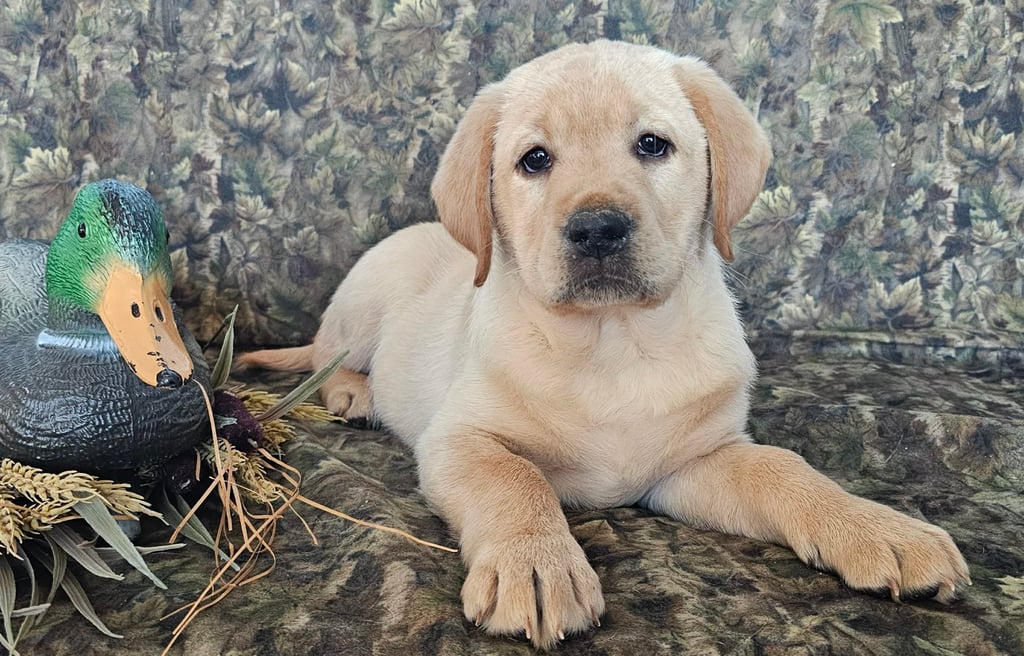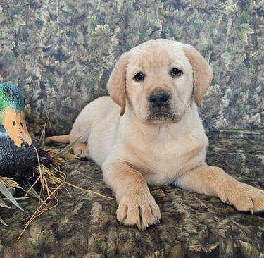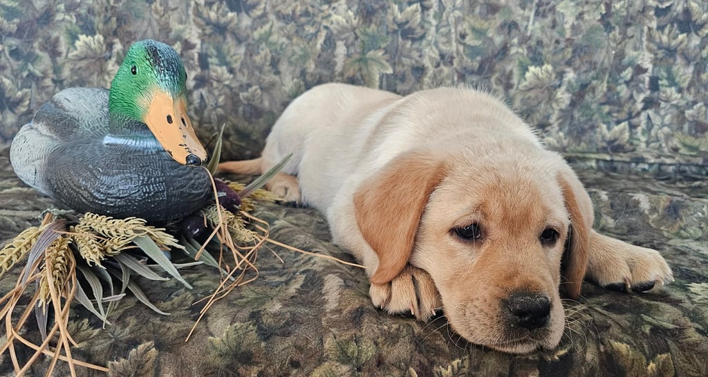We have one handsome yellow male pup ready for a new home anytime. We will work with him on housetraining and basic commands and his price will go up as training increases. Message me for more info!